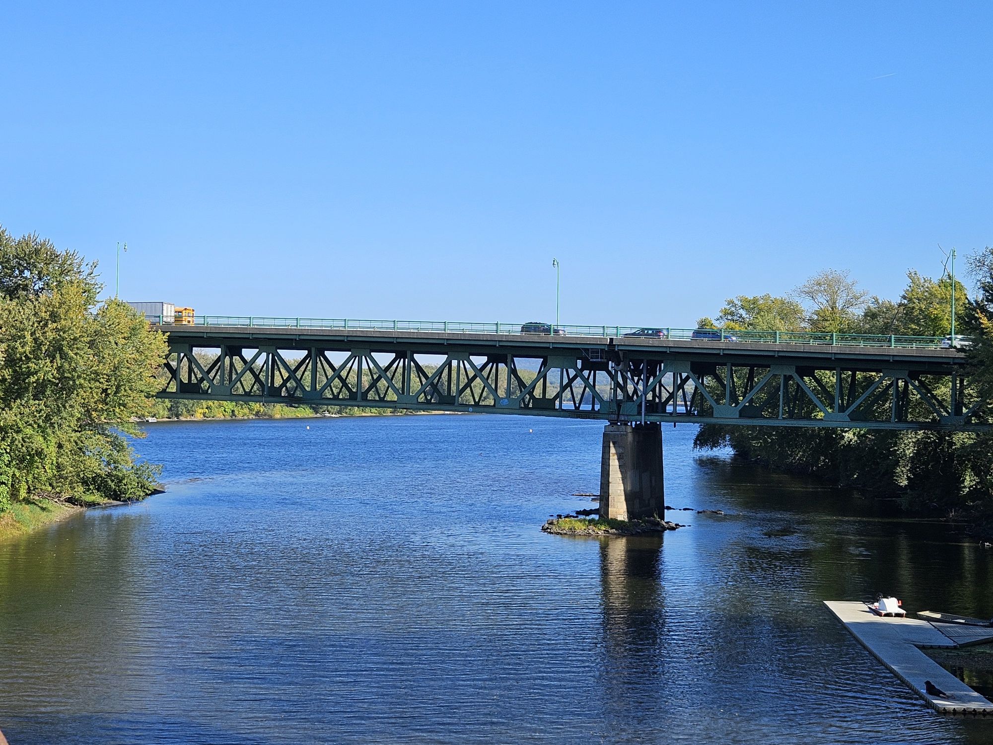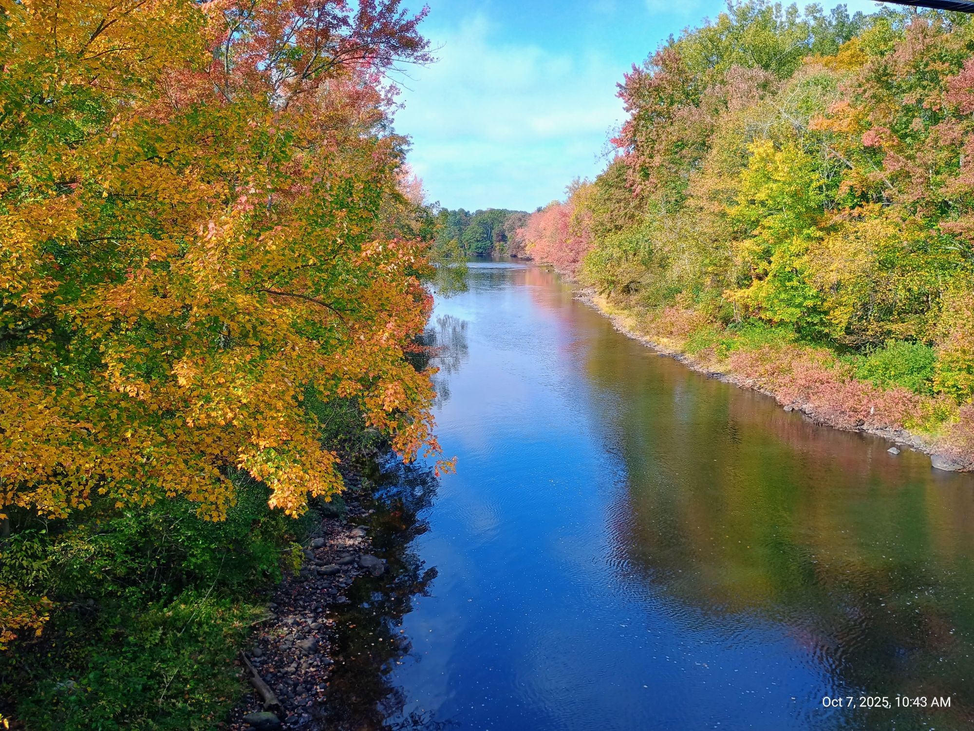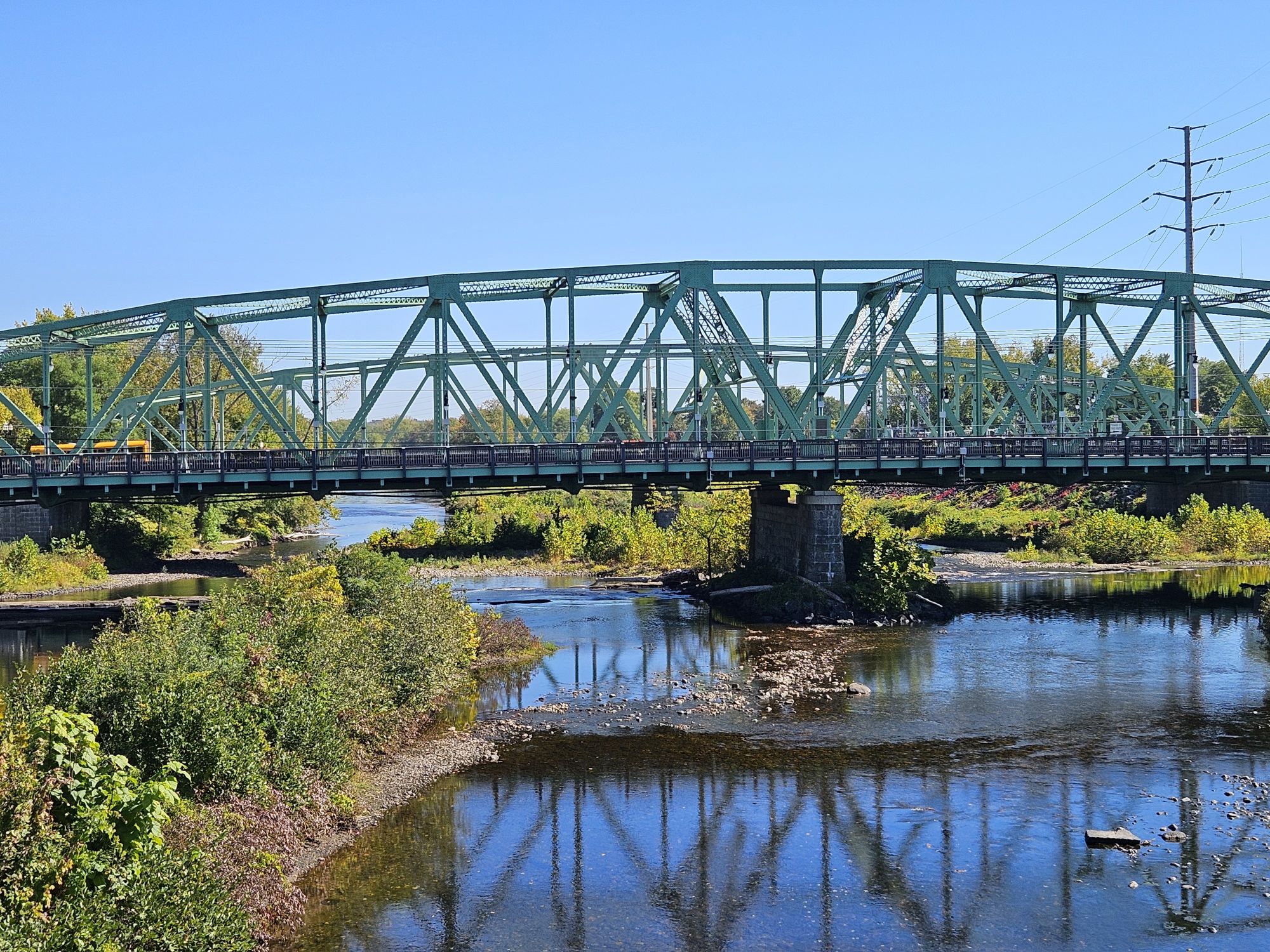 After the break, we headed west towards the bike trail. We took the Farmington Valley Heritage Trail north, which turns into the Southwick Bike Trail once we hit Massachusetts, and that turns into the Columbia Greenway Trail. The trails are nice this time of year. Lots of shade and there is a bit of color on the leaves. But we had to watch out for the squirrels who love to run out in front of the bikes! The trails took us to Westfield, MA, and a newer section took us over the Westfield River.