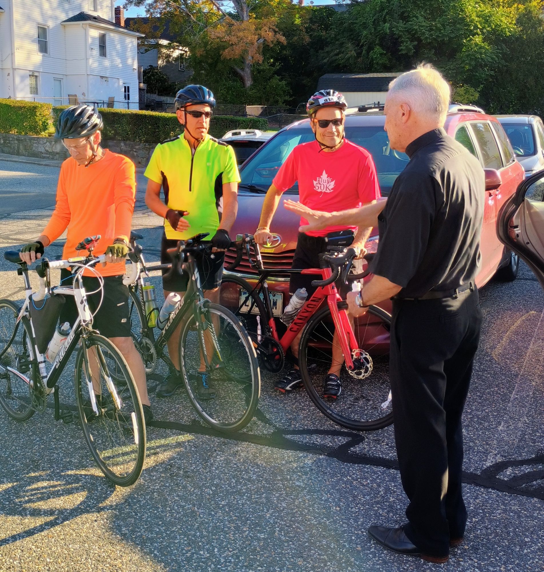 We met at St. Bernard’s Church in Vernon, CT. We were greeted by Fr. Rick Ricard and our friends Dennis Petruzzi and John Bouley (the president of Outreach to Haiti’s Board). St. Bernard is yoked with St. Matthew in Tolland, and St. Matthew is long-time supporter of Outreach. We received a blessing from Fr. Rick and started the ride right on time -- 9 am.