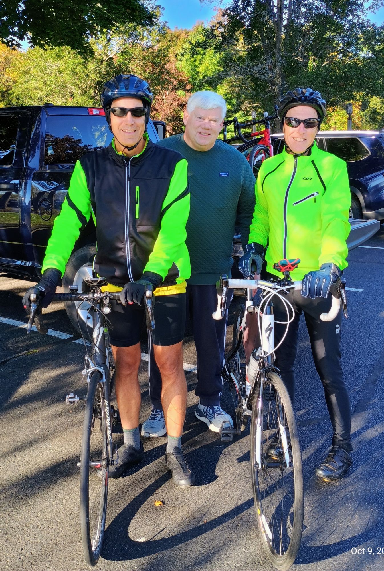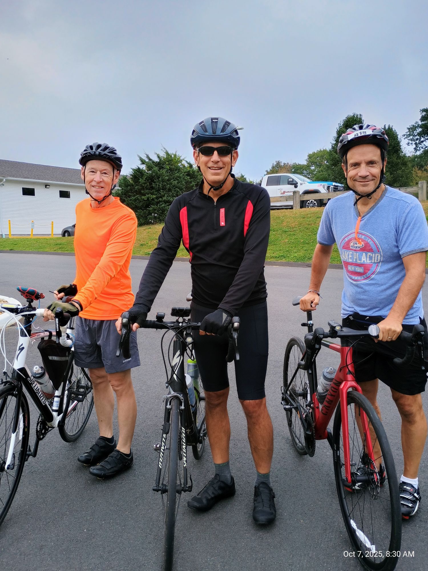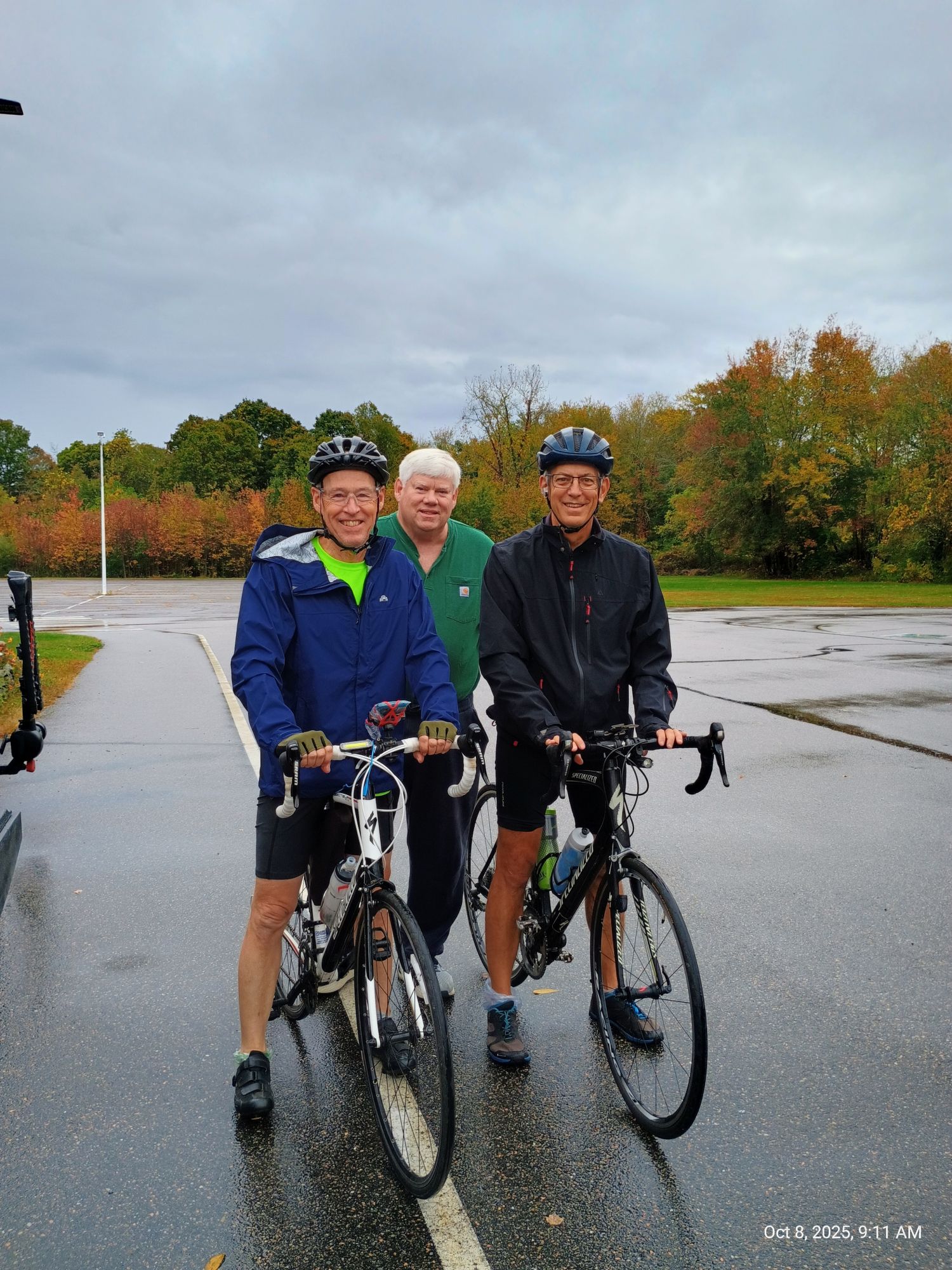We arrived at St. Patrick Church in Farmington right at 3:00 – the ETA at the start of the ride – to another wonderful greeting and a reception in the church hall. The greeting was not as loud as the one from Mercy HS, but it was heartfelt and enthusiastic – and it included my 3 year-old grandson! Here is a video of our arrival - 20251010_150800.mp4. We saved the high-fives until we got off our bikes!