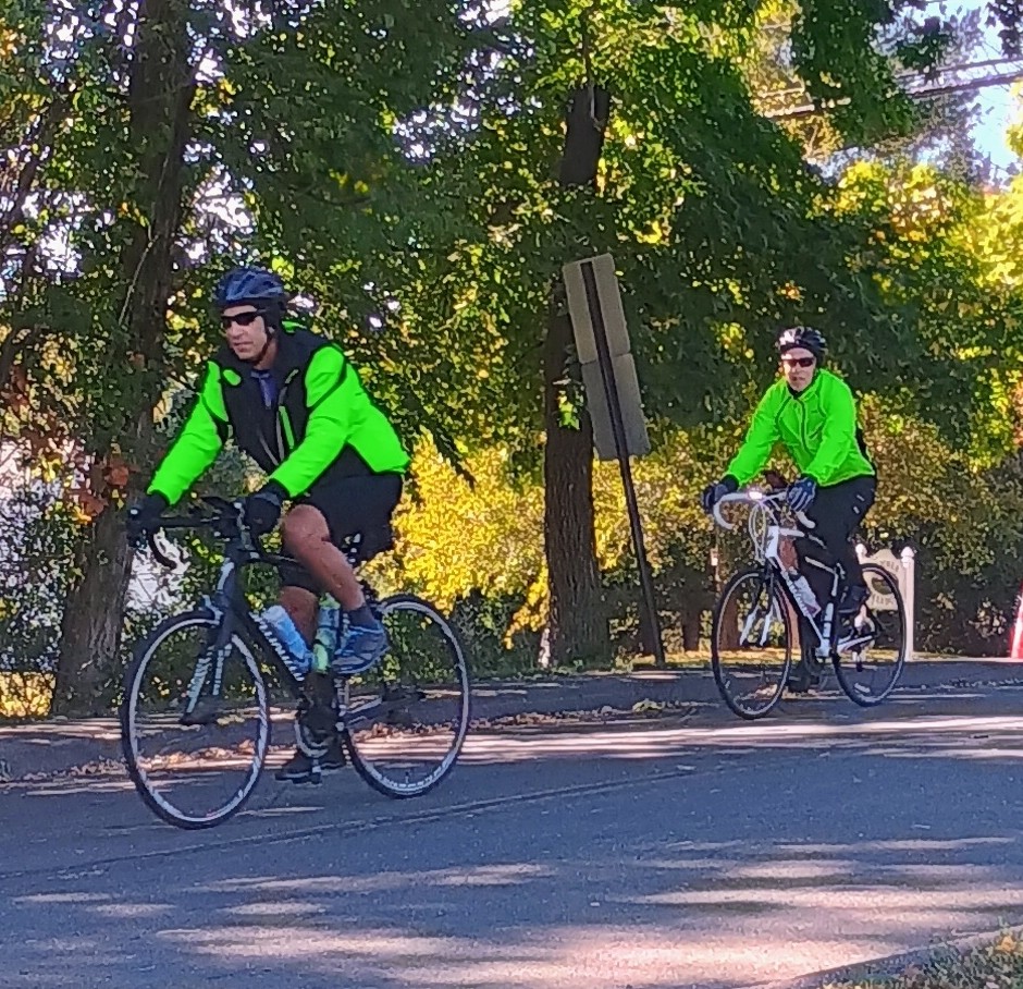 Colder weather today, but sunny! We started the ride with temperature in the 80’s – today it was in the upper 30’s at the start of the ride. So, Ron and Tom bundled up a bit (one of us wisely chose noto cover their legs - it was a bit chuilly in shorts!) and started just before 9. Dorothy was back with us to support the ride.